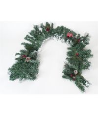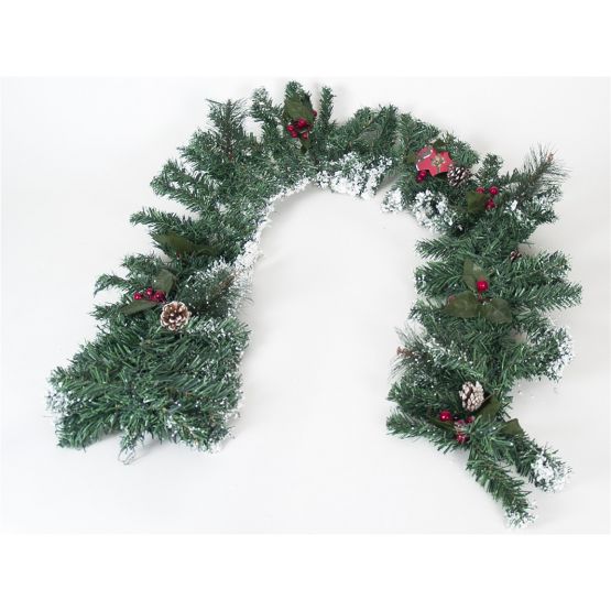 Guirnalda decorada con nieve y bayas rojas para estas navidades