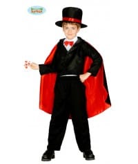 Si te encanta la magía este es tu disfraz, un disfraz de mago estupendo compuesto por sombrero, pechera con pajarita, chaqueta, capa y pantalón, es un disfraz muy completo, todo el mundo en la fiesta de disfraces y en carnavales, querrán conocer tus trucos, serás el centro de atención en todas las reuniones con tus amigos.