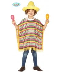 Directo desde Méjico, y con más ritmo y más simpático que ningún invitado de tu fiesta de disfraces o a la fiesta temática a la que asistas, irás al carnaval con mucho ritmo y con un toque personal muy simpático, este disfraz de mejicano se compone de un poncho con colores muy alegres, combinalo con nuestros complementos para ser el rey de la fiesta. Podrás ir acompañado de un adulto pues tenemos tallaje para mayores.