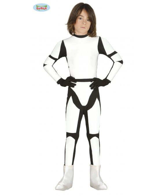 Puedes estar al servicio de la Orden, con este disfraz de soldado espacial, de la saga de Star Wars, es un disfraz compuesto por un mono, para niño y para niña, además podréis montar increíbles grupos todos juntos, y asistir a comparsas, fiestas de disfraces y carnavales, os lo pasaréis en grande, y vigilad vuestras espaldas.